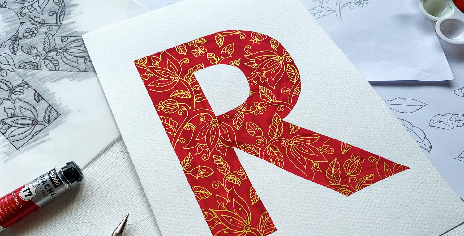 In this class you will learn how to illustrate an alphabet with a beautiful Indian floral pattern, transforming it into a beautiful and unique monogram. I will guide you through each step, from selecting the perfect font to designing the pattern, tracing the sketch, adding colour, and finishing with a shimmering outline.