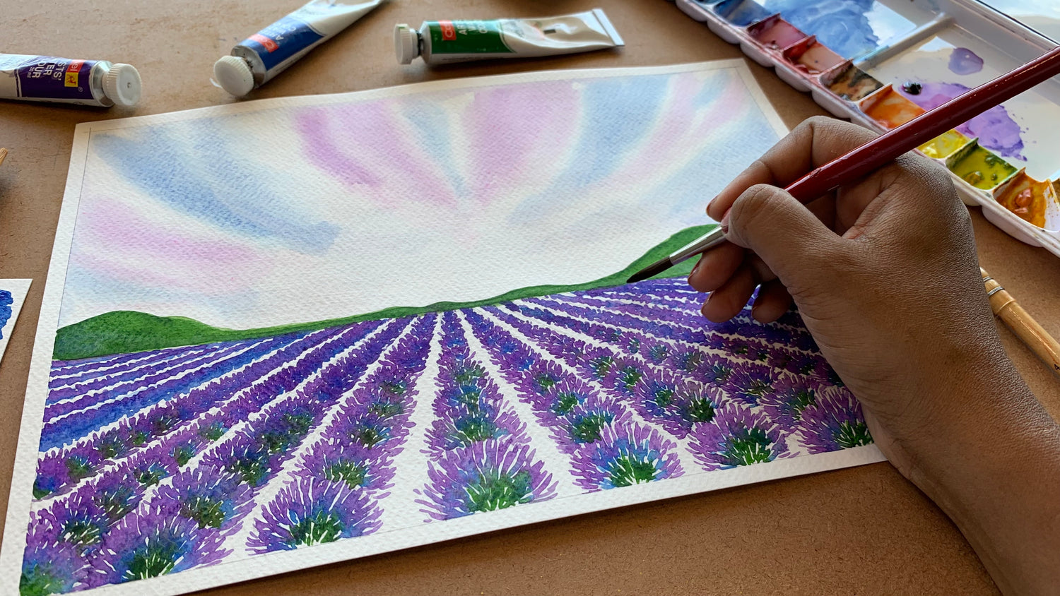 This is a super easy class on how to sketch and paint a very simple lavender field using watercolors. Duration: 40 min