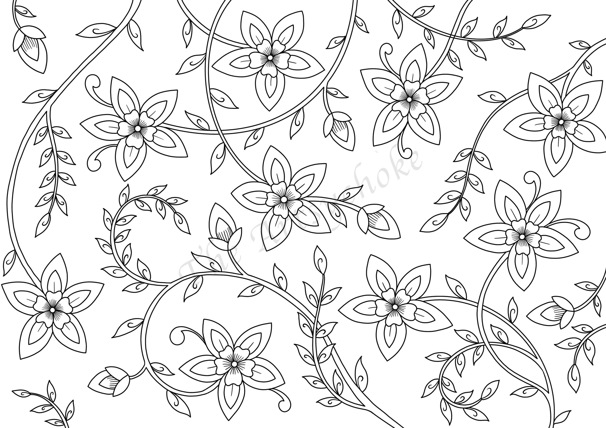 Ready to paint hand-drawn floral patterns. Just download, print, and paint! For the best resolution, print on A4-sized paper.